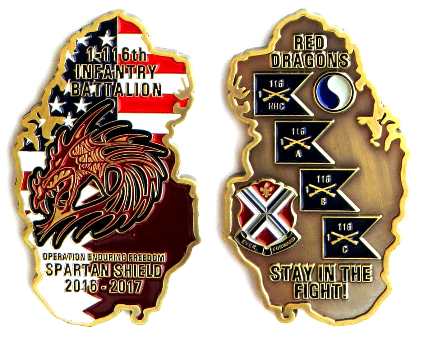 Qatar shaped coin, brass in color, 2 3/4 inches high x 1 5/8 inches wide.