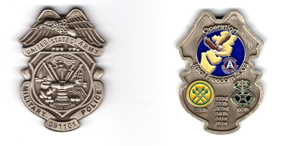 Badge shaped coin, very antique pewer in color, 2 inches high x 1.4 inches wide.