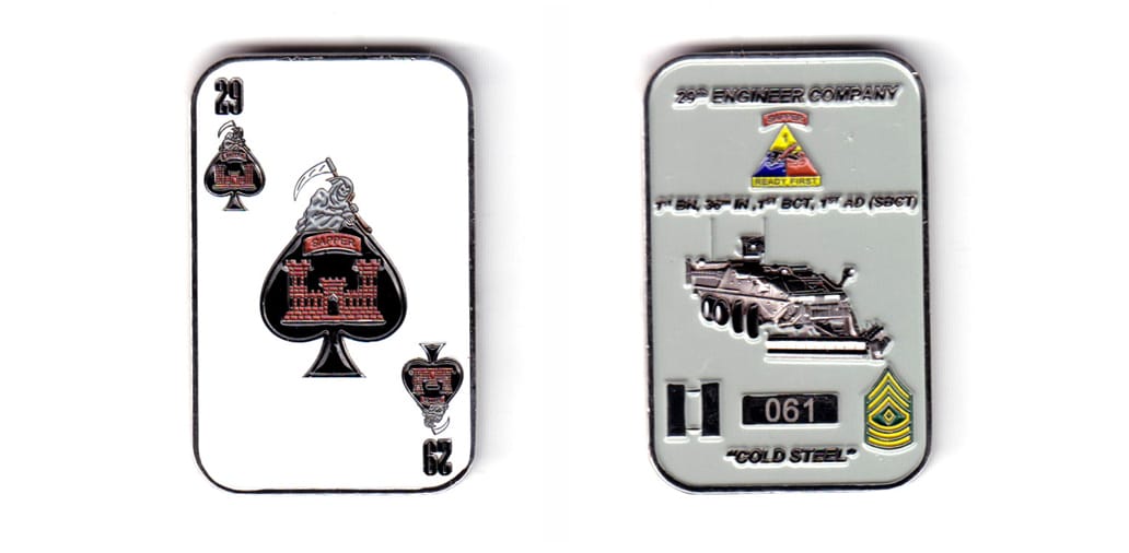Round shaped coin, brass in color, 1 61/64 inches in diameter. SIDE 1 - SIDE 2 - Journal - Page 89 - Line 7 SFC Stover is an engineer with the 52nd Engineer Detachment, Savannah District, US Army Corps of Engineers. Read More