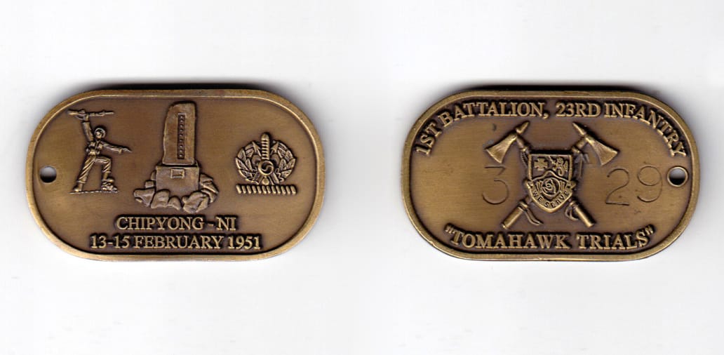 Coin Number stamped "3 29" "Tomahawks" In Korea the 23rd Infantry served initially as a "fire brigade type unit" and moved to counter enemy thrusts. From Kunu-ri to Wonji the 23rd Infantry experienced 84 consecutive days of enemy... Read More
