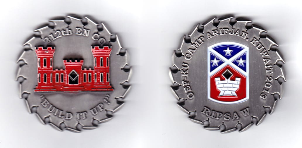 Oval shaped coin, silver in color, 1 1/32 inches high x 1 47/64 inches wide. SIDE 1 - SIDE 2 - Coin # 072 Journal - Page 99 - Line 9 The 138th Engineer Support Company was deployed to Afghanistan during Operation Enduring Freedom 2013... Read More