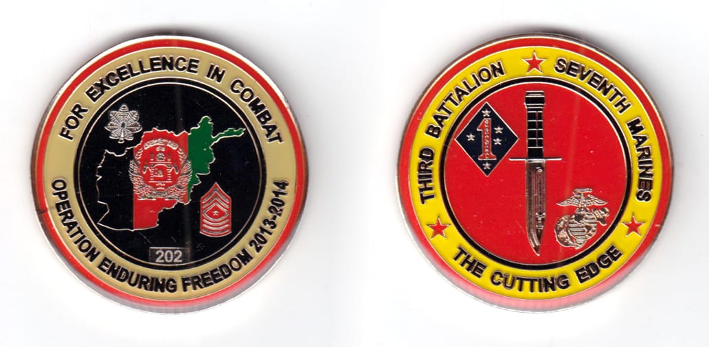 Round shaped coin, pewter in color, 1 5/8 inches in diameter. SIDE 1 - SIDE 2 - Journal - Page 101 - Line 28 CW3 Claflin is assigned to 3rd Battalion, 2nd Air Defense Artillery Regiment, in Fort Sill, Oklahoma and recently returned from de... Read More