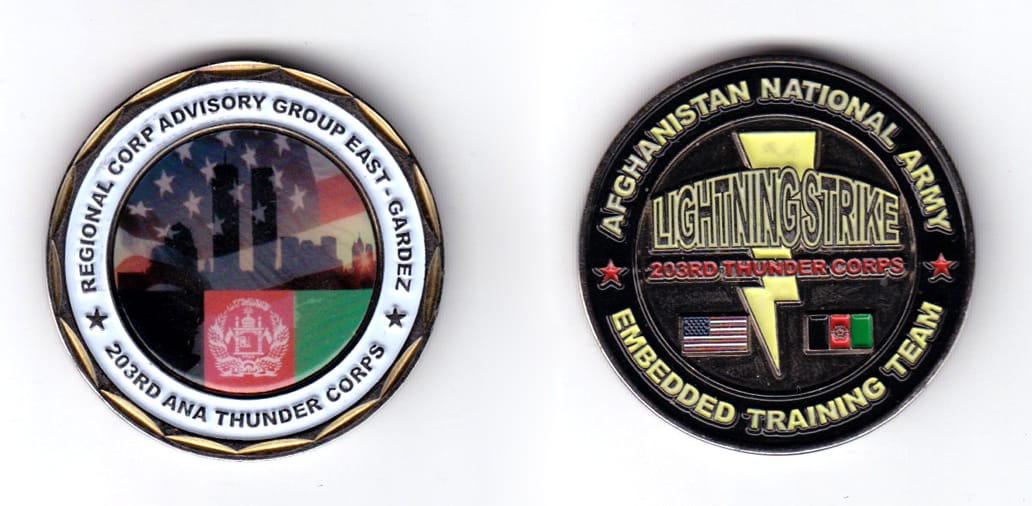 Shield shaped coin, antique brass in color, 2 inches high x 1 1/2 inches wide. SIDE 1 - SIDE 2- Presented by the Division Command Sergeant Major Read More