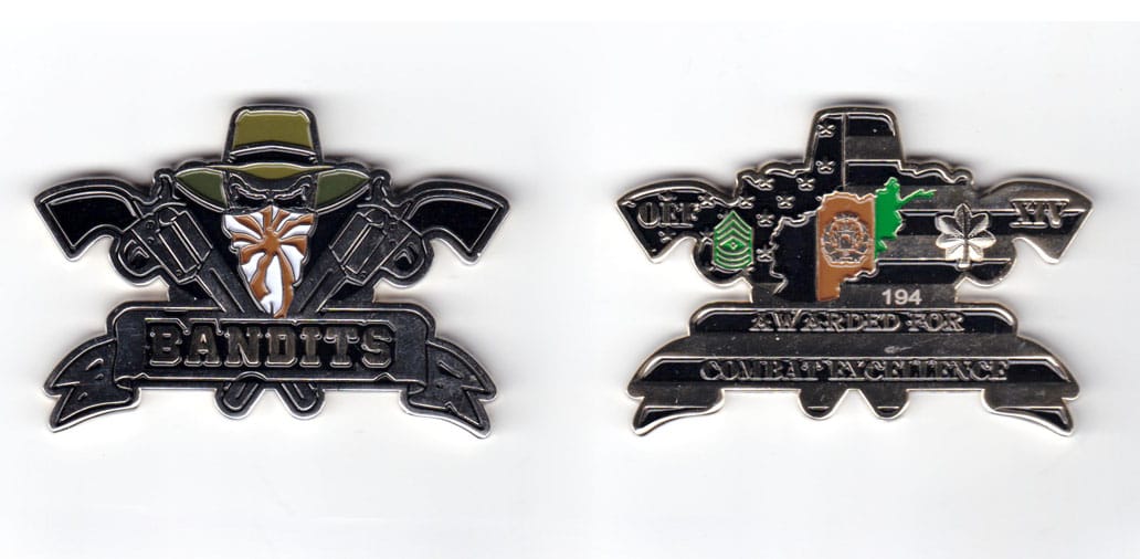 Round shaped coin, brass in color, 1 3/4 inches in diameter SIDE 1 - SIDE 2- The design incorporates the insignia of the 1st Marine Division to which it belongs: a blue diamond with a vertical axis, outlined in white with the Southern Cross co... Read More