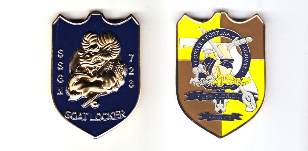Hatchet shaped coin, antique pewter in color, 1 1/4 inches high X 3 inches wide. Journal - Page 112 - Line 21 USS Florida SSGN-728), an Ohio-class ballistic missile submarine, is the sixth ship of the United States Navy to be named for the 27th s... Read More