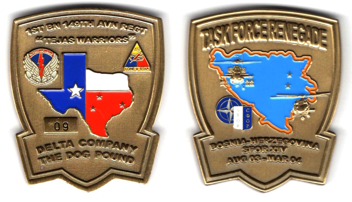 Shield shaped coin with a wide banner intersecting the lower 1/4th, antique brass in color, 2 inches high x 1 5/8 inches wide. Coin Number 09 The 36th Infantry Division was reconstituted in a May 2004 reorganization of the 49th Armored Division. Read More