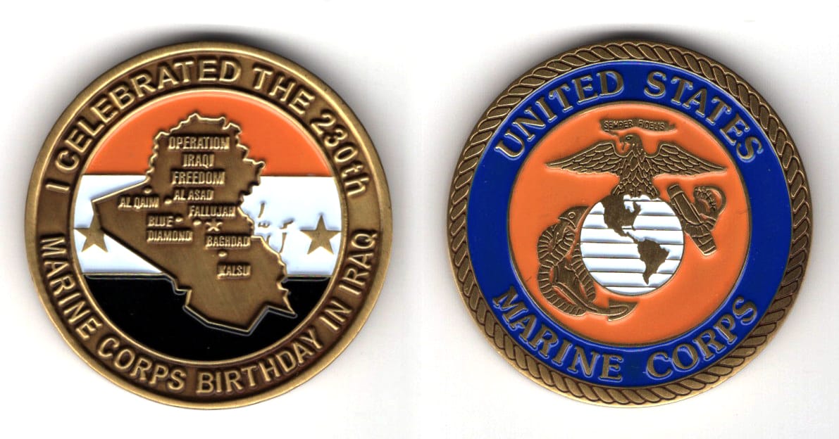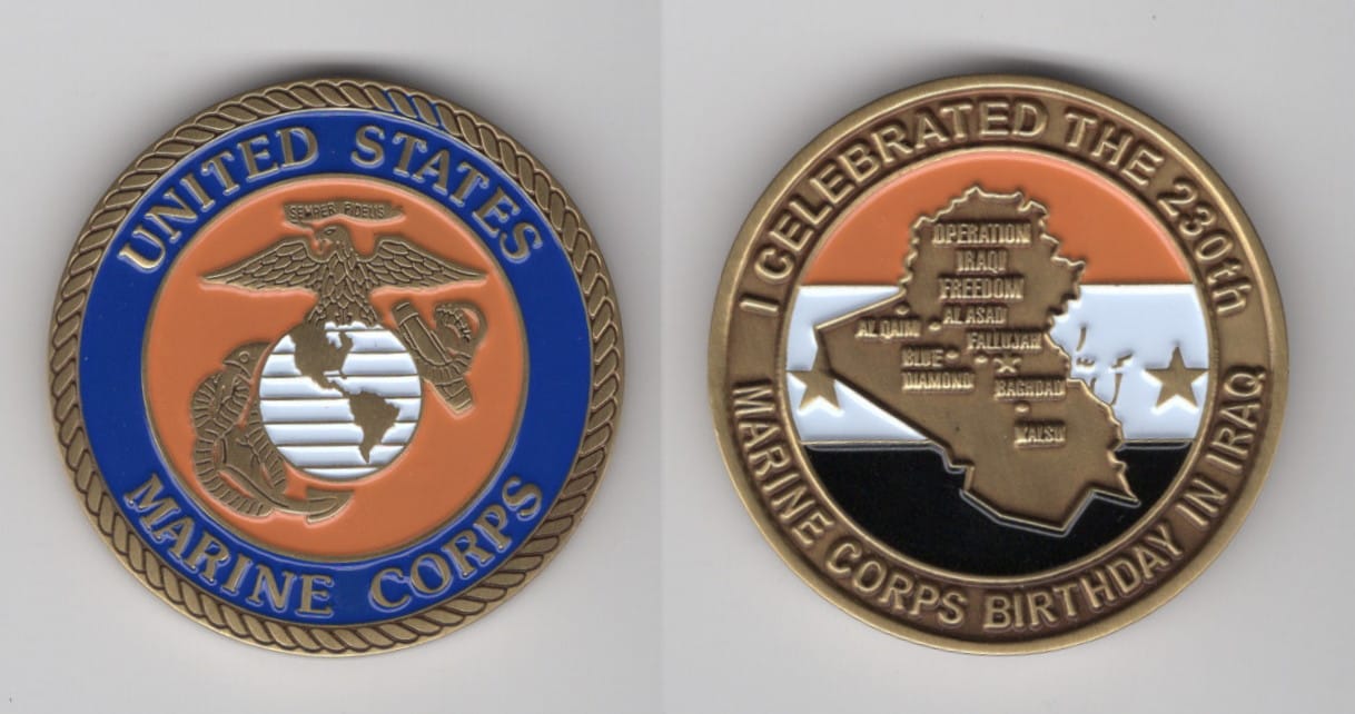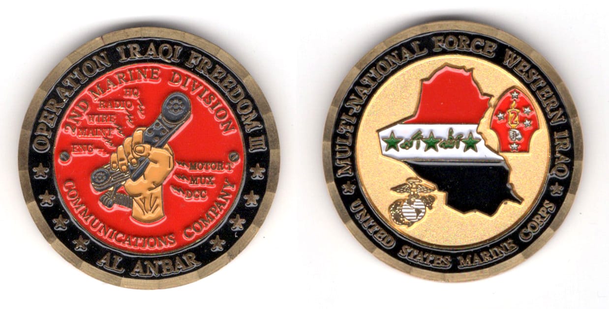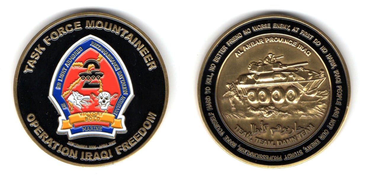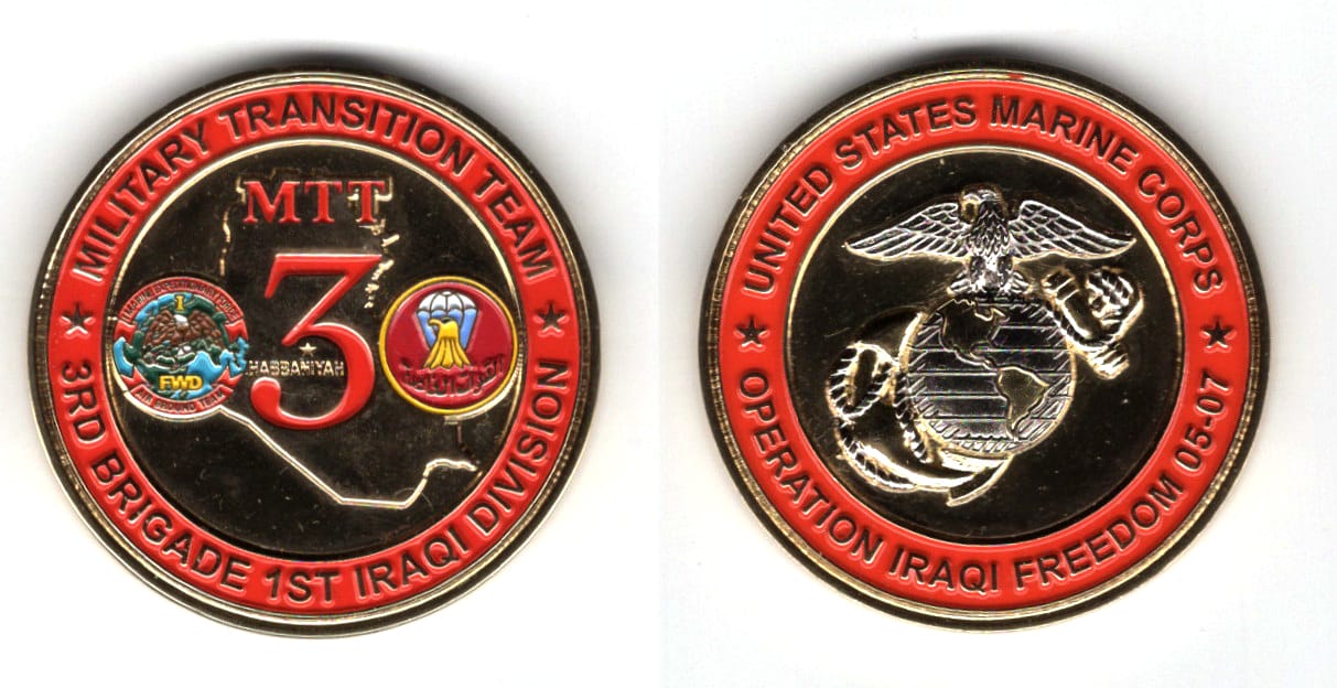 Round shaped coin, brass in color, 1 3/4 inches in diameter. USMC Military Transition Team mentoring and training 3rd Brigade, 1st Iraqi Division Read More