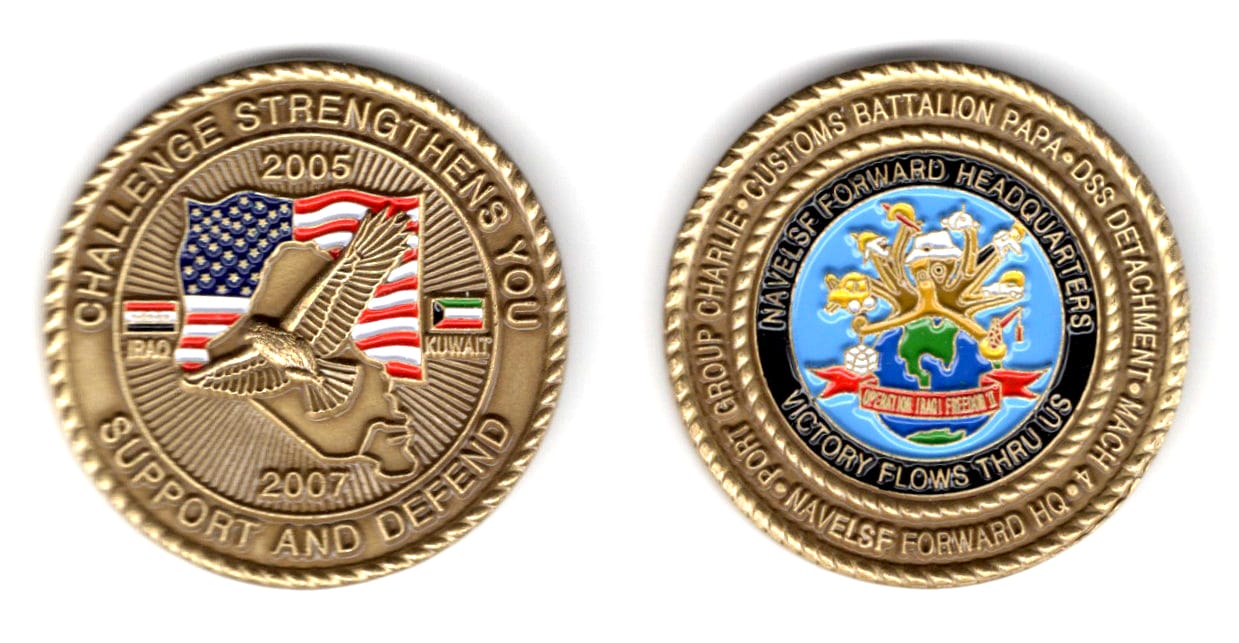 Round shaped coin, antique brass in color, 1 3/4 inches in diameter. Naval Expeditionary Logistics Support Force (NAVELSF) Read More