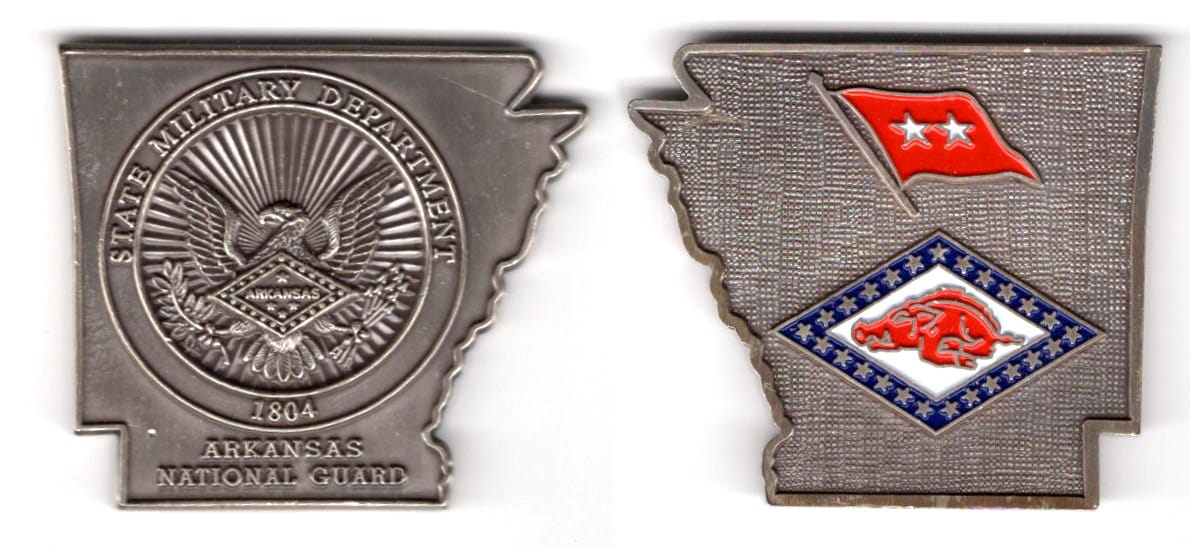 Arkansas shaped coin, pewter in color, 1 1/2 inches high x 1 3/4 inches wide. Read More