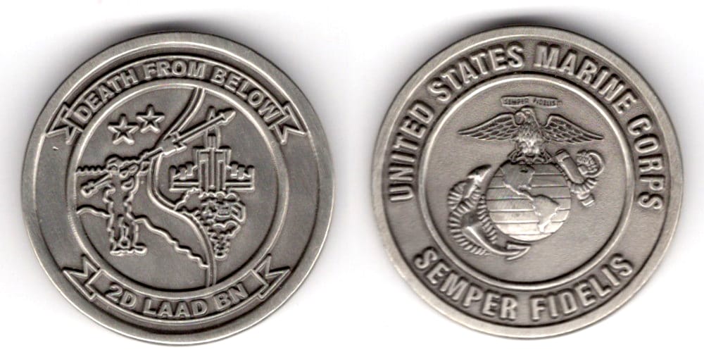 Round shaped coin, pewter in color, 1 1/2 inches in diameter. 2nd Low Altitude Air Defense Battalion (2nd LAAD Bn) Read More