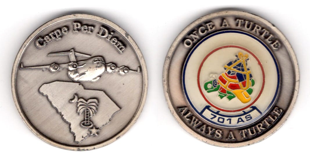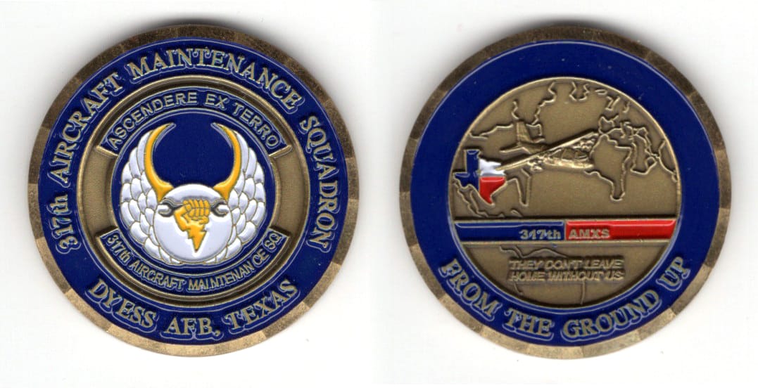 Round shaped coin, antique brass in color, 1 1/2 inches in diameter. 317th Aircraft Maintenance Squadron (317th AMXS) Read More