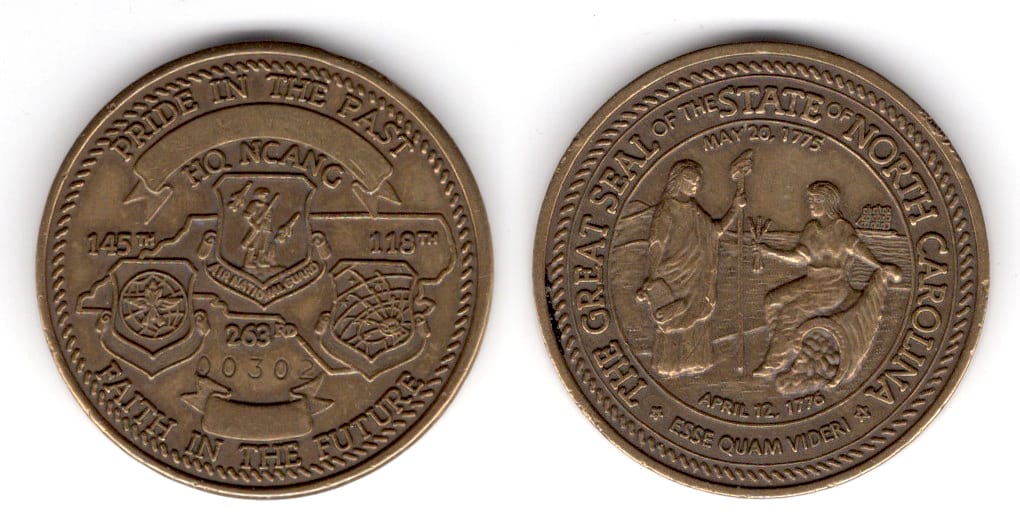 Round based coin, brass in color, 1 1/2 inches in diameter. Read More