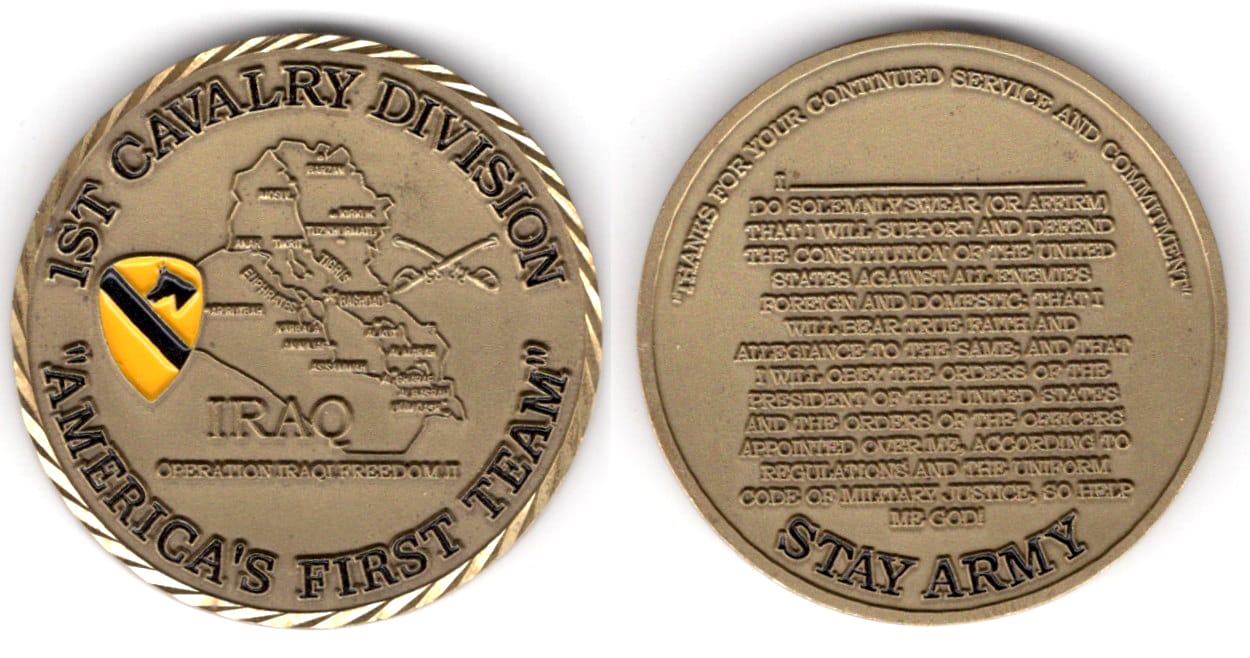 Round shaped coin, brass in color, 1 1/2 inches in diameter. Read More