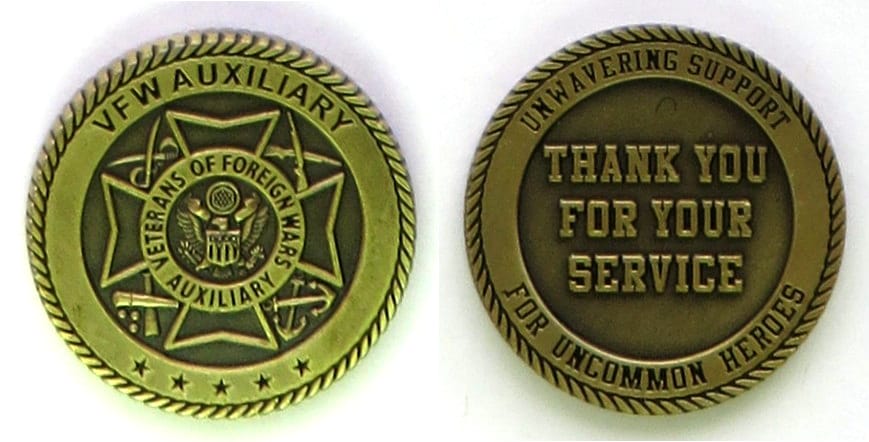 Round shaped coin, antique brass in color, 1 1/4 inches in diameter, Journal - Page 113 - Line 16 Read More