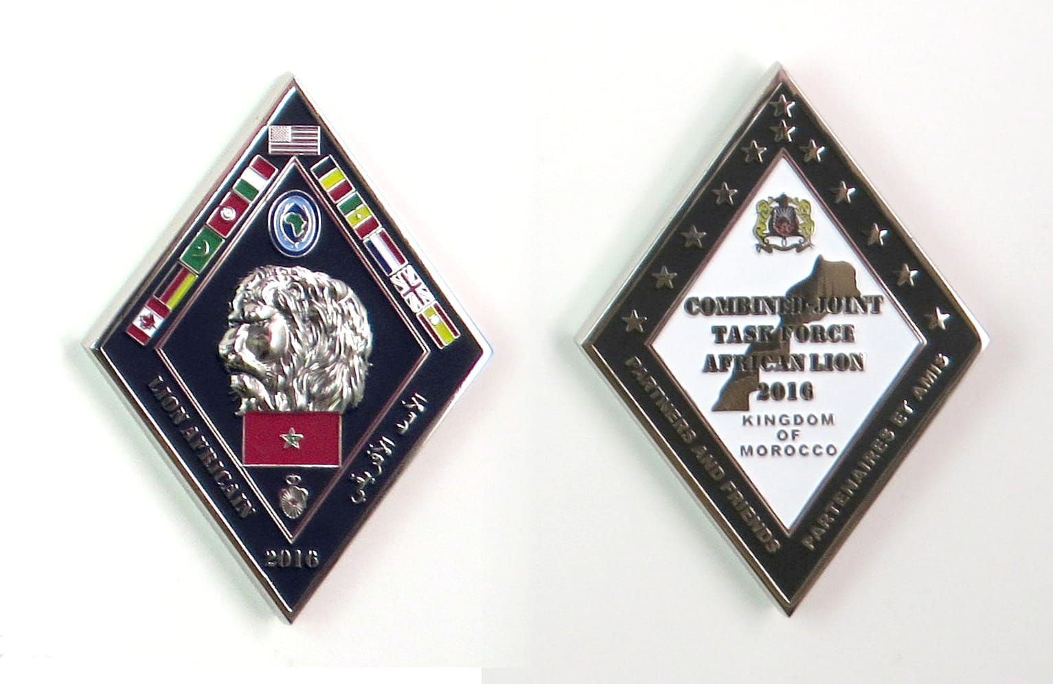 Coin is diamond in shape, pewter in color, 3 inches high x 2 1/8 inches wide. Journal - Page 118 - Line 23 From a US Marines news release dated 2 May 2016: "Service members from the U.S. Armed Forc... Read More