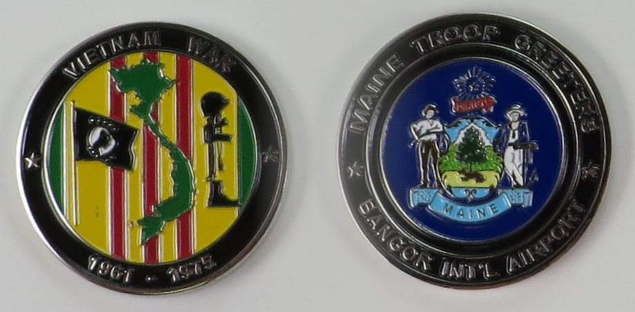Round shaped coin, green black & white in color, 1 1/2 inches in diameter Journal - Page 117 - Line 13 The 101st Air Refueling Wing (101 ARW), affectionately known as the "Mainacs" is a unit of the Maine Air National Guard, stationed at Bangor Ai... Read More