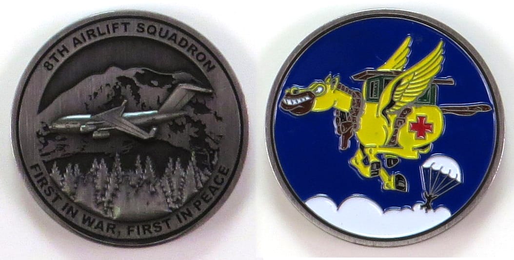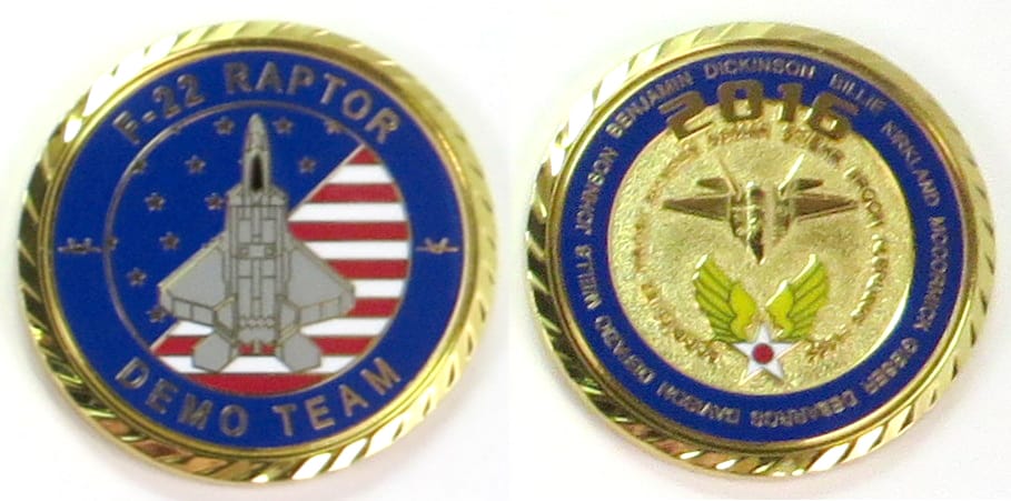 Round shaped coin, brass in color, 1 3/4 inches in diameter. Journal - Page 119 - Line 34 The Lockheed Martin F-22 Raptor is a fifth-generation, single-seat, twin-engine, all-weather stealth tactical fighter aircraft developed for the United Stat... Read More