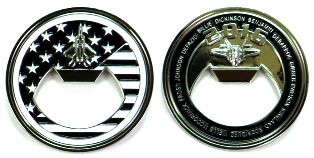 Round shaped bottle opener, pewter in color, 2 inches in diameter. Journal - Page 119 - Line 33 The Lockheed Martin F-22 Raptor is a fifth-generation, single-seat, twin-engine, all-weather stealth tactical fighter aircraft developed for the Unite... Read More