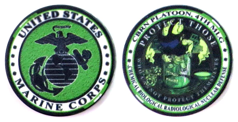 Round shaped poker chip, green & black in color, 1 3/4 inches in diametr=er. Journal - Page 118 - Line 22 Note: CBRN stands for chemical, biological, biological, and nuclear. Read More