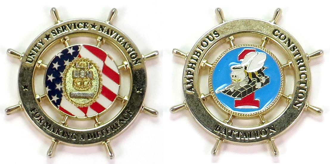 Round shaped spinner, brass in color, 2 inches in diameter. SIDE 1 - DAY AND NIGHT LIGHTNING STRIKE SIDE 2 - DECKPLATE LEADERS, ASK THE CHIEF Journal - Page 117 - Line 16 Helicopter Sea Combat Squadron 14 (HSC-14) flies the Sikorsky MH-60S... Read More