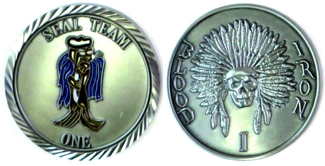 Round shaped coin, pewter in color, 2 inches in diameter. Seal Team One. The United States Navy's Sea, Air and Land Teams, commonly known as the Navy SEALs, are the U.S. Navy's primary special operations force and a component of the Naval Speci... Read More
