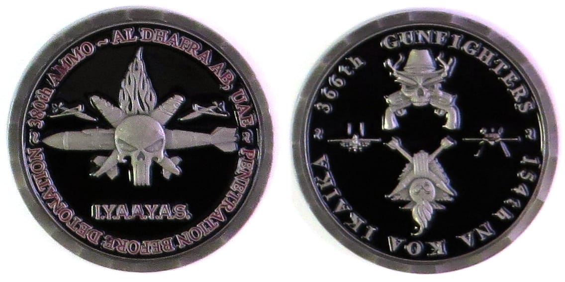 Round shaped coin, antique brass in color, 1 5/8 inches in diameter. Luke Air Force Base is a United States Air Force base located seven miles (11 km) west of the central business district of Glendale, in Maricopa County, Arizona. It is a major trai... Read More
