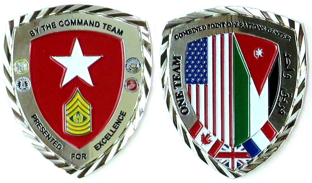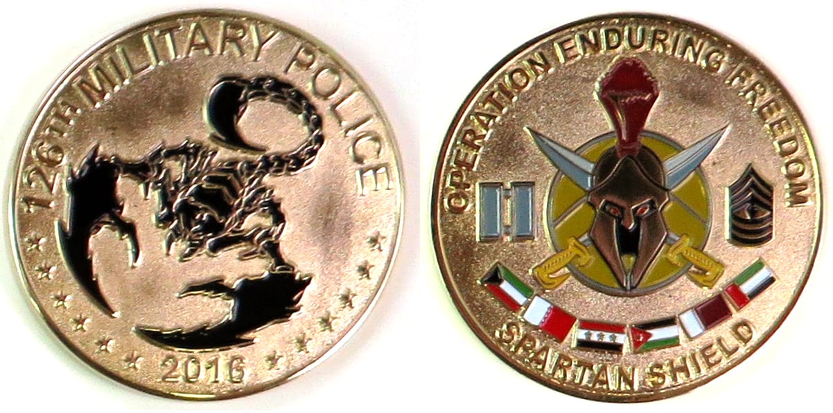Round shaped coin, pewter in color, 2 inches in diameter. Journal - Page 122 - Line 19 From a news release by the New Mexico National Guard dted 5 November 2016 and datelined Albuquerque, New Mexico "The 126th Military Police Company of the New... Read More