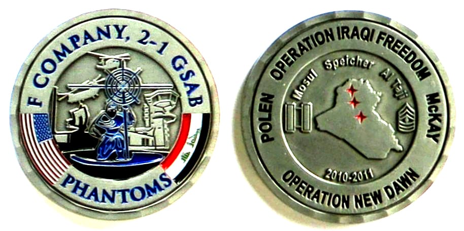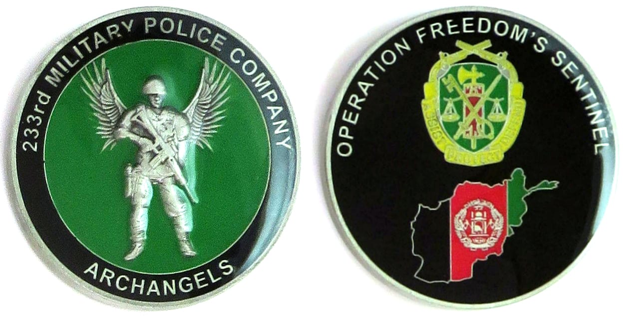 Round shaped coin, pewter in color, 2 inches in diameter. Journal - Page 123 - Line 28 From an Illinois National Guard News Release dated 4 January 2017: "SPRINGFIELD - Approximately 30 Illinois Army National Guard Soldiers who served in Afghanist... Read More