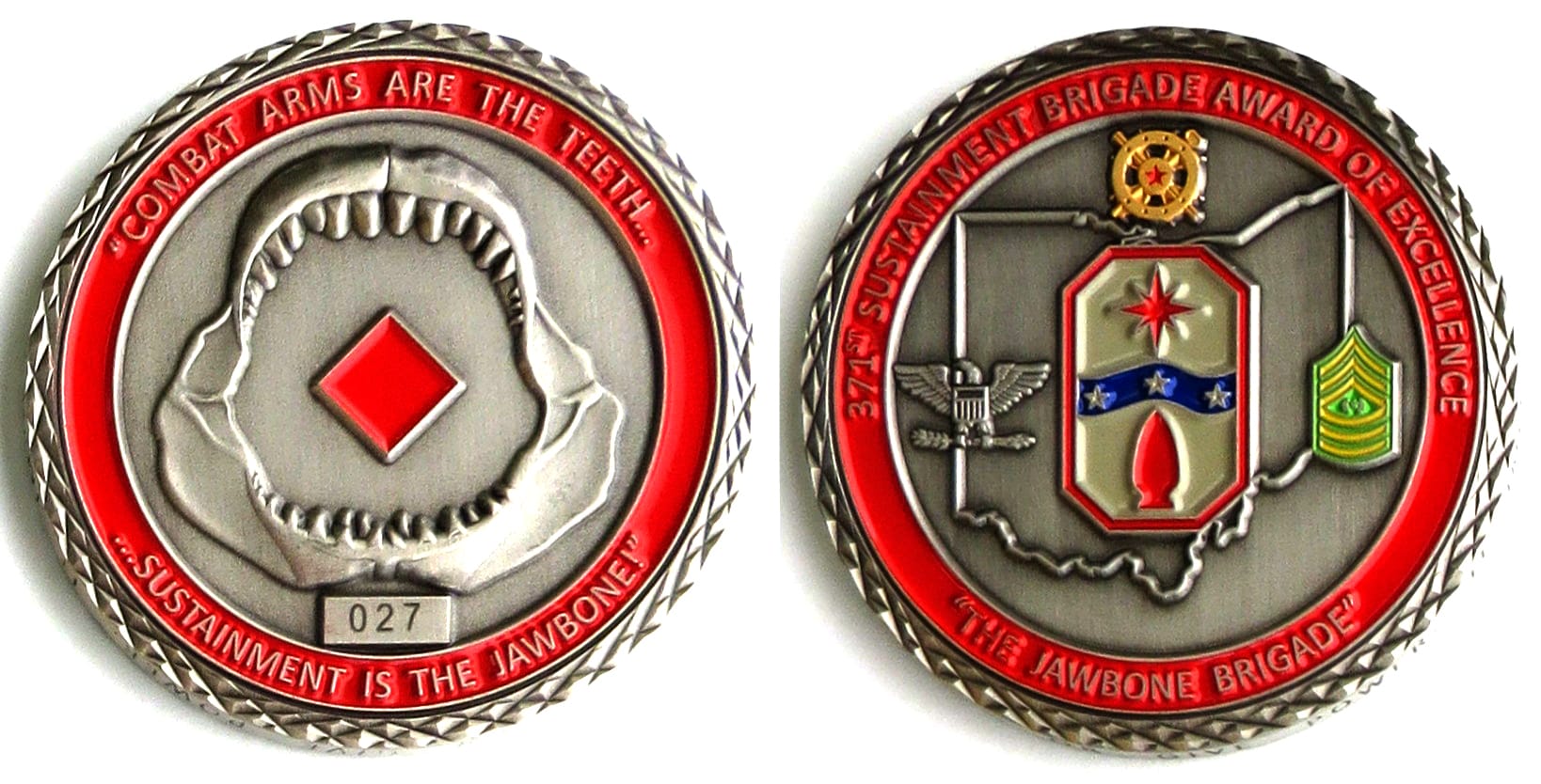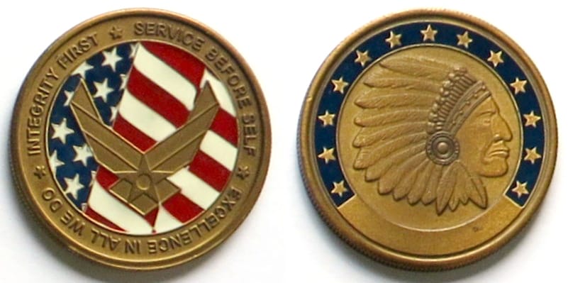 Round shaped coin, pewter in color, 1 3/4 inches in diameter. SIDE 1 - 44TH Fighter Wing, Fresno, CA, First Sergeant Council SIDE 2 - ONE SHARP ROCK, Californis ANG, 144th FIGHTER WING Read More