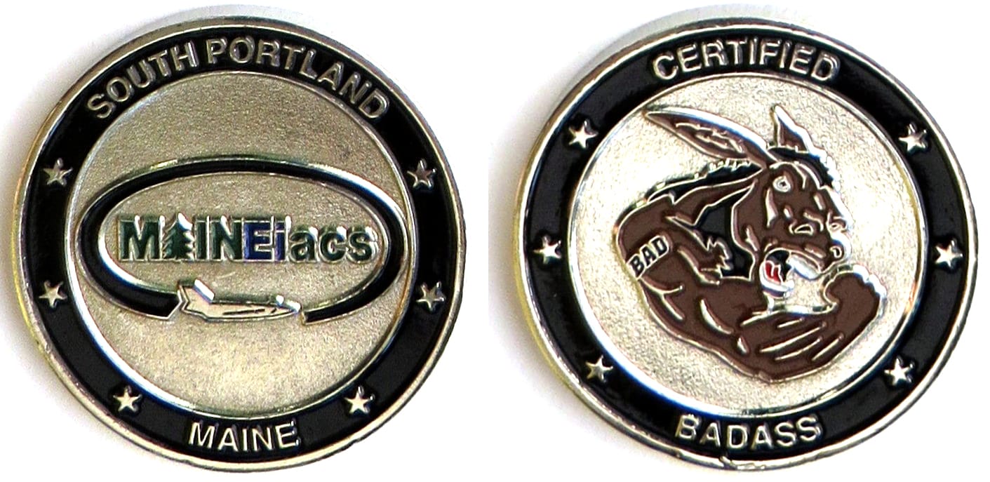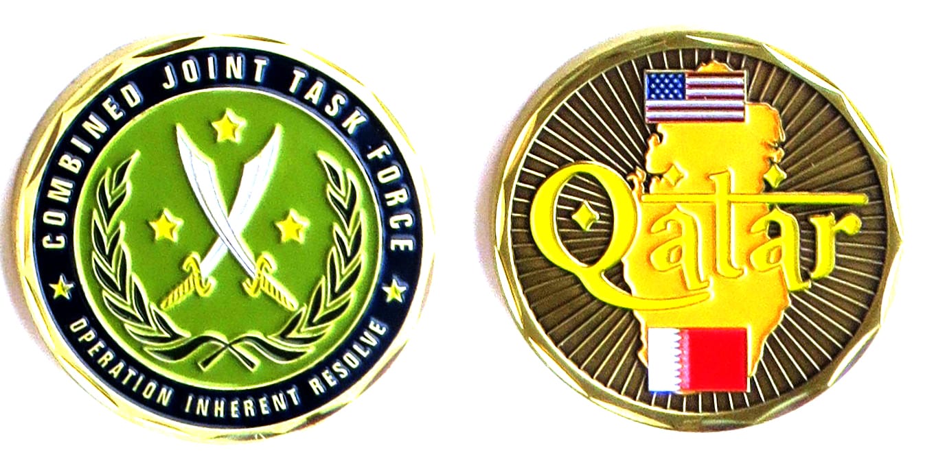 Round shaped coin, pewter in color, 1 3/4 inches in diameter. Cpt Barnes states that this coin has been to Africa, Germany, Afghanistan, Iraq and Washington DC ( the White House). Read More