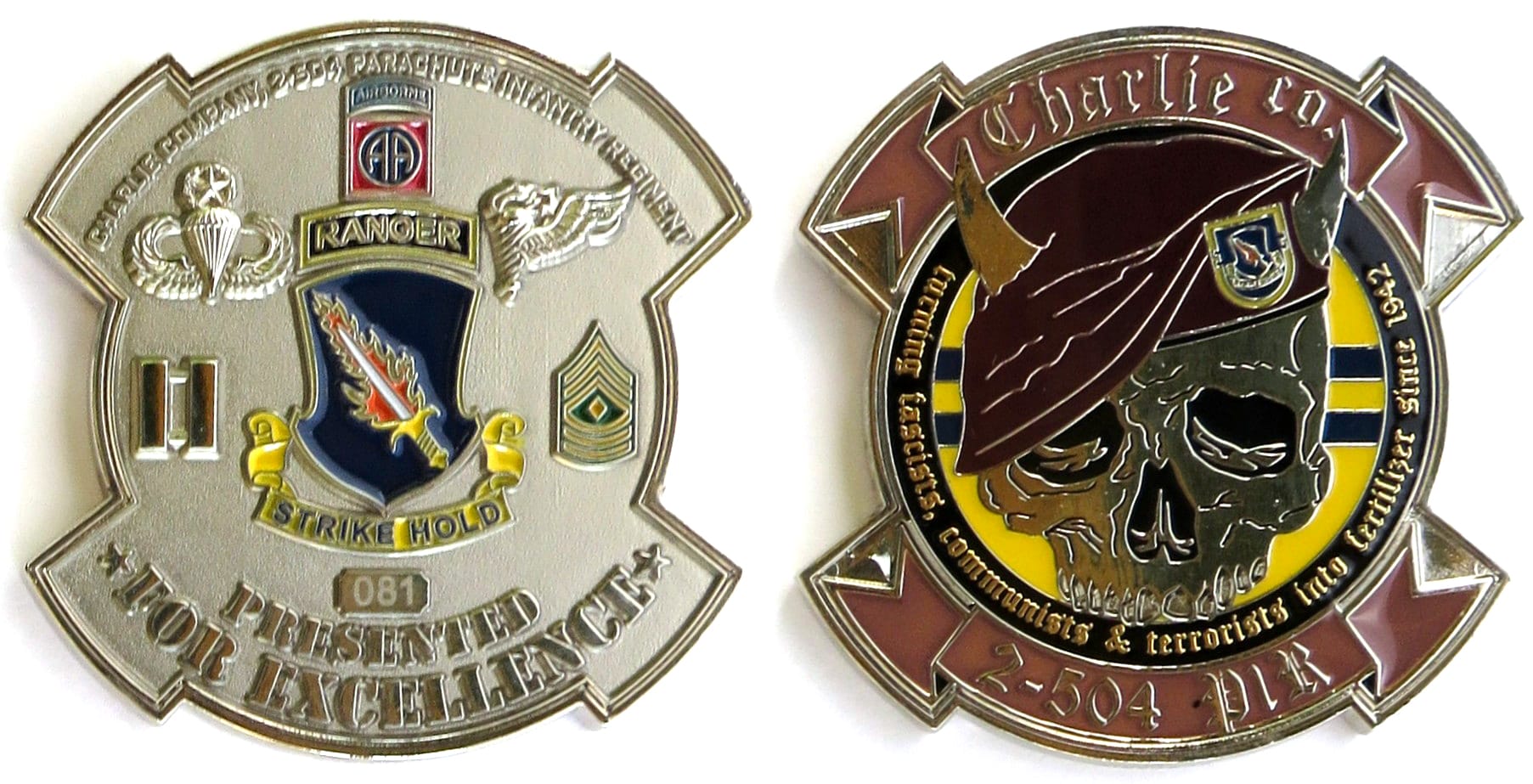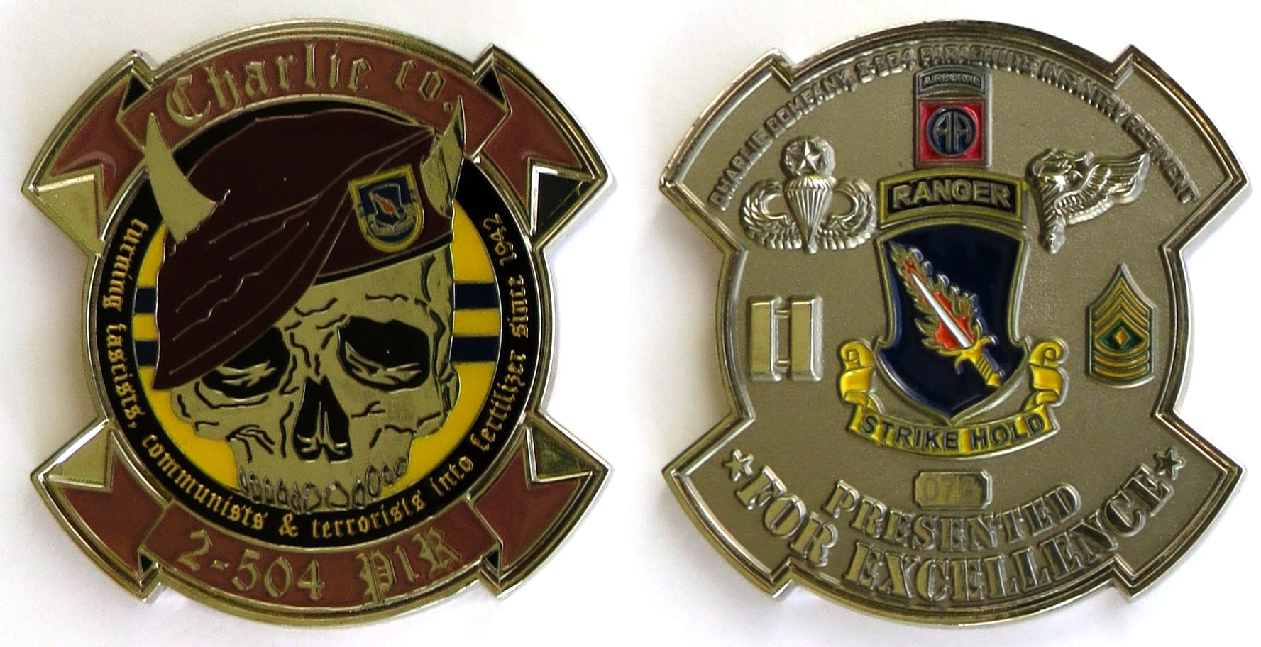 Horshoe crab shaped coin, pewter in color, 3 inches high x 2 1/2 inches wide. SIDE 1 - 74 AMU - MOODY AFB, WORLD FAMOUS FLYING TIGERS, A010 WARTHOG SIDE 2 - 74 AMU, FLYING TIGERS, THUNDER Read More