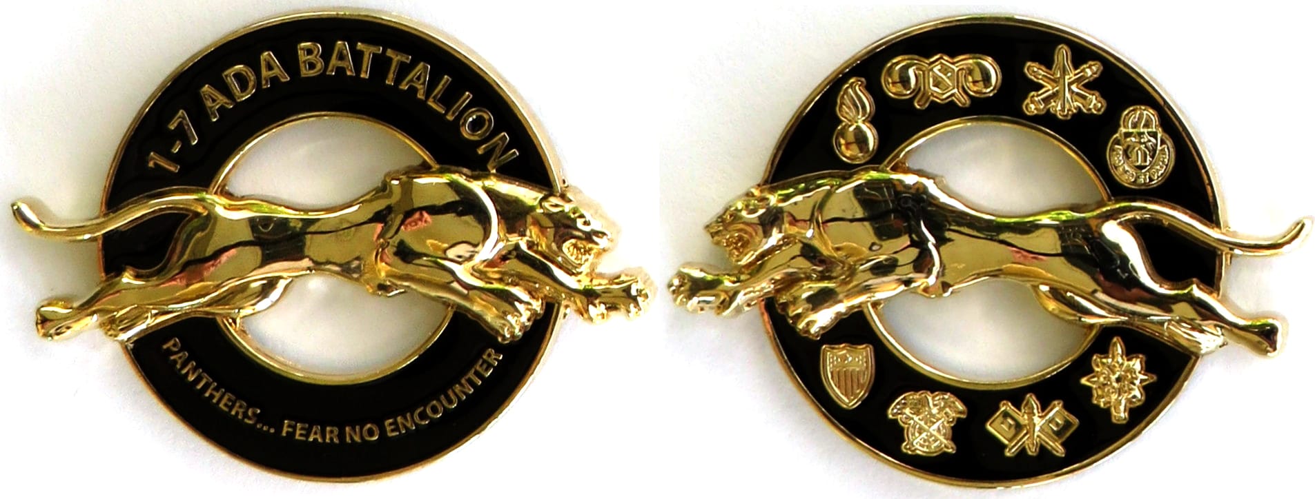 Round shaped coin with leaping panther protuding, brass in color, 1 3/4 inches high x 2 1/2 inches wide. Read More