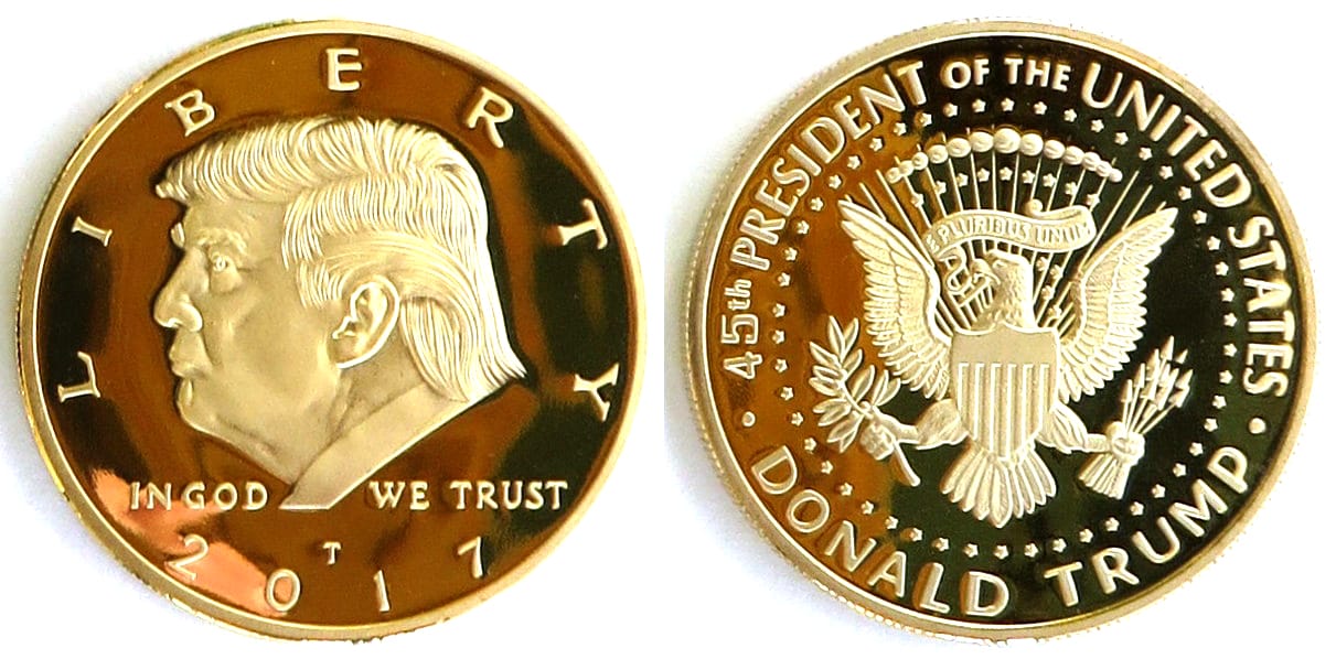 Round shaped coin, gold in color, 1 1/2 inches in diameter. Read More
