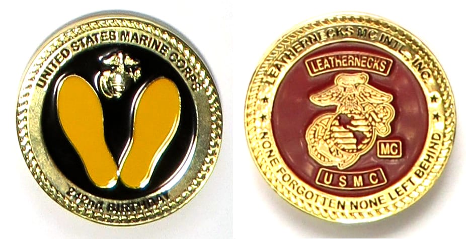 Round shaped coin, brass in color, 1 3/4 inches in diameter. Coin commorates the 242nd birthday of the US Marine Corps in 2017. Read More