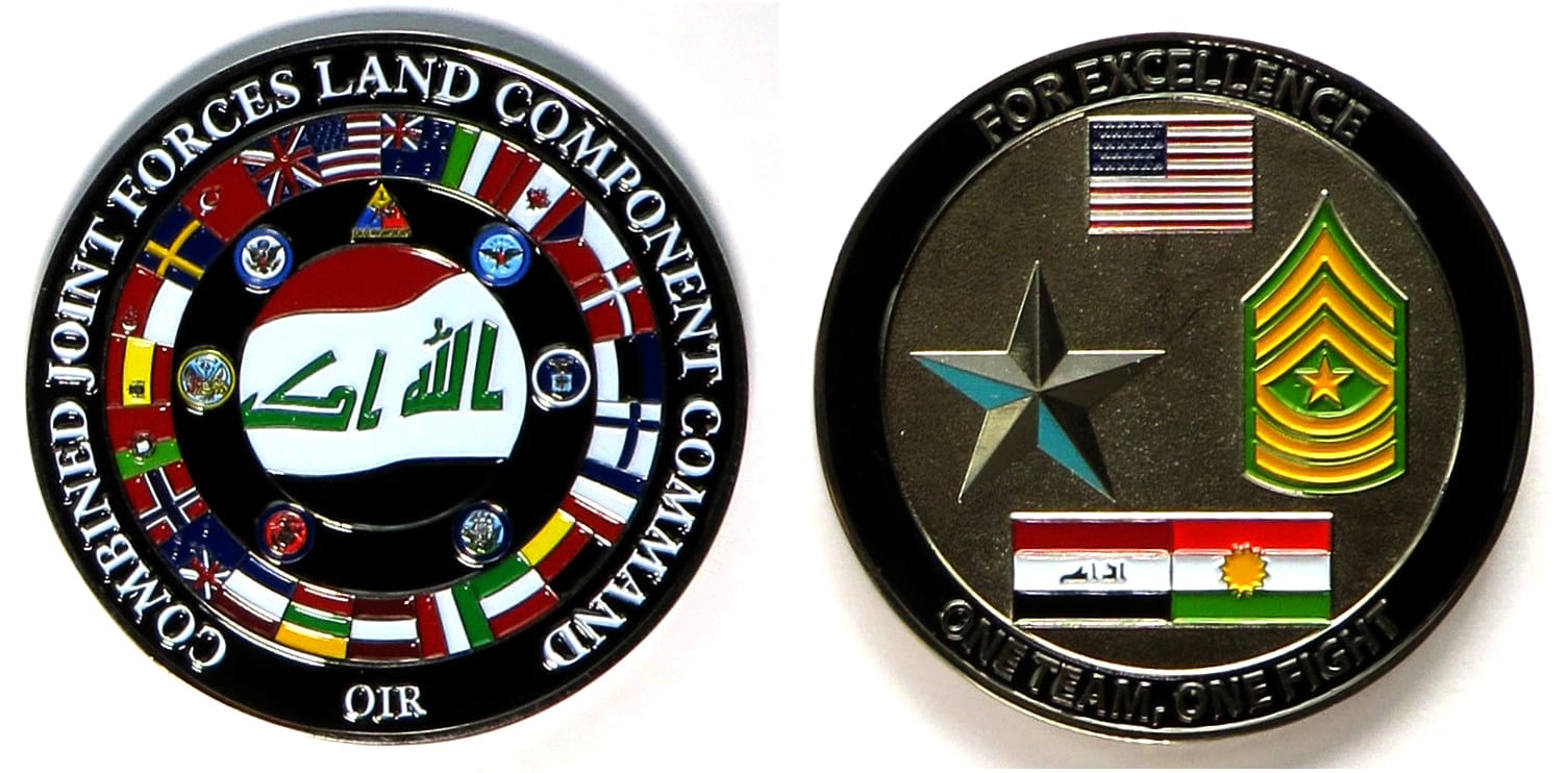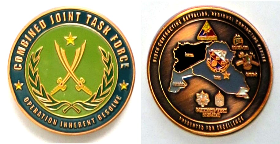 Round shaped coin, copper in color, 1 3/4 inches in diameter. 919th Contracting Battalion, Army Contracting Command. Read More