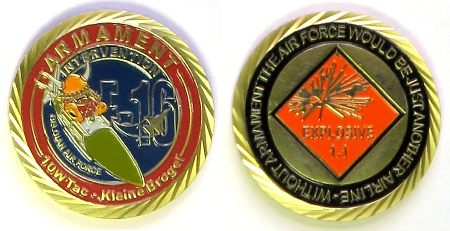 Round shaped coin, brass in color, 1 1/2 inches in diameter. Belgium Air Force. Read More