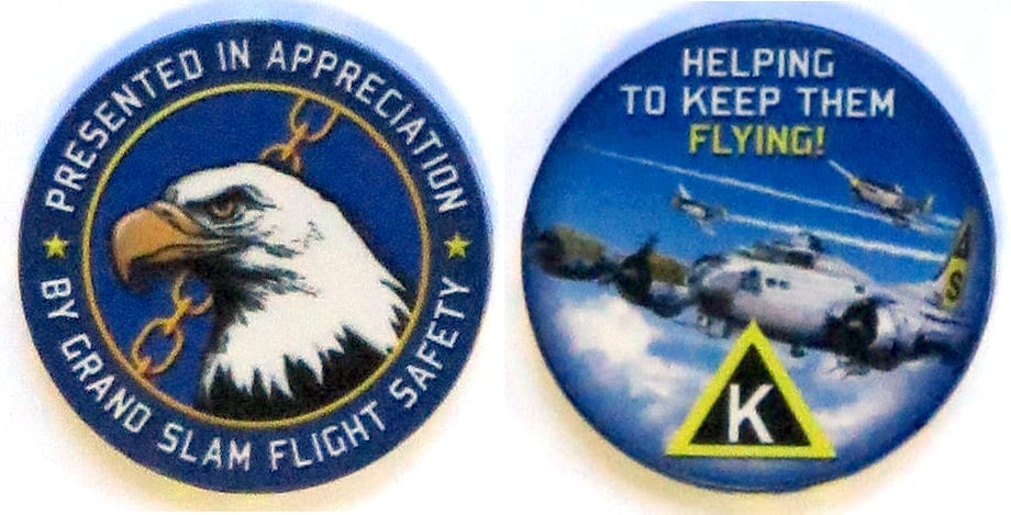 Round shaped poker chip, blue in color, 1 1/2 inches in diameter. Presented by the 379th Wing Safety Officer for safely supporting aircraft from multiple countries. Read More