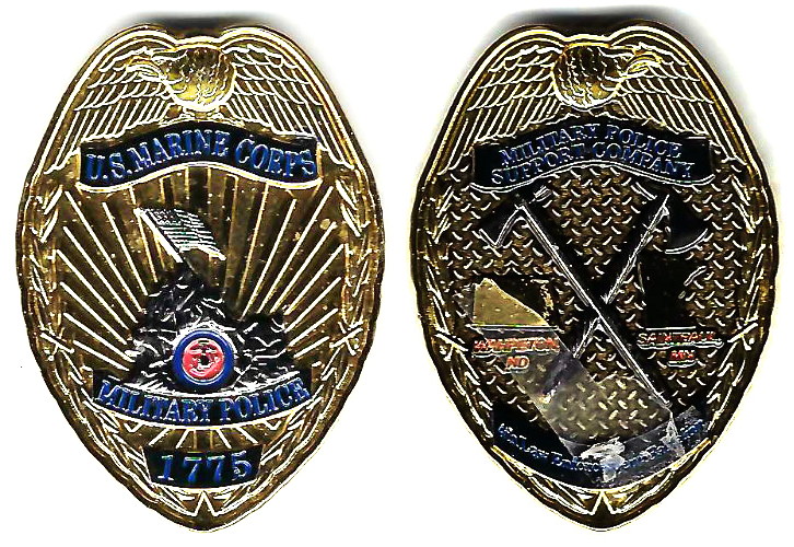 Shield shaped coin, brass in color, 2 inches hgh x 1 1/2 inches wide. 4th Law Enforcement Battalion, U.S. Marine Corps Reserve. Read More