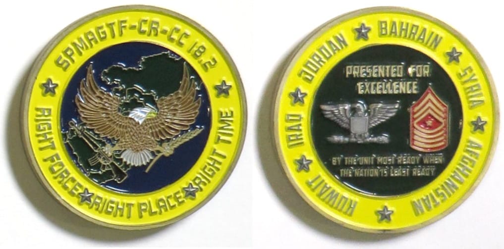 Round shaped coin, brass in color, 2 inches in diameter. Special Purpose Marine Air-Ground Task Force. Read More