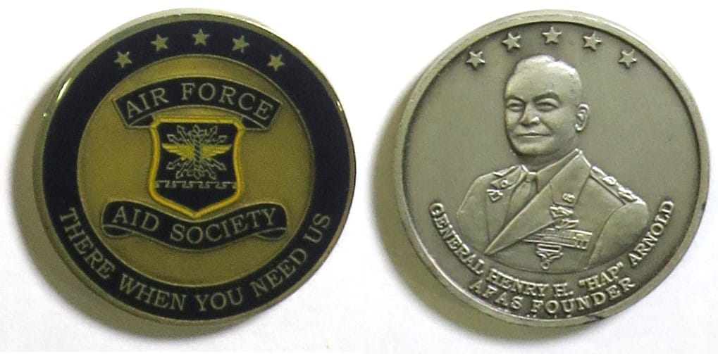 Round shaped coin, pewter in color, 1 3/4 inches in diameter. The Air Force Aid Society (AFAS) is the official charity of the United States Air Force. Founded in 1942, AFAS is a private non-profit organization whose mission is to help relieve financ... Read More