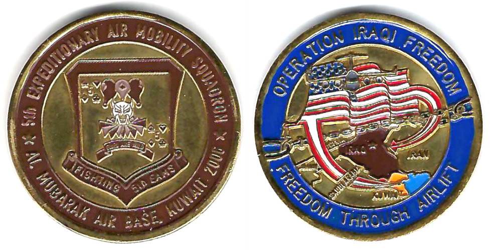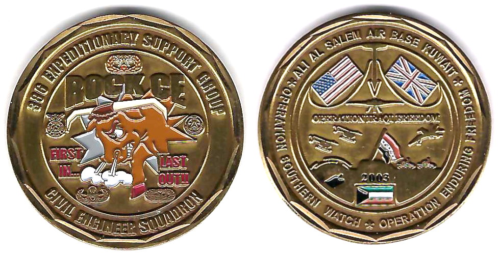 Round shaped coin, brass in color, 1 5/8 inches in diameter. 386th Expeditionary Support Group. Read More