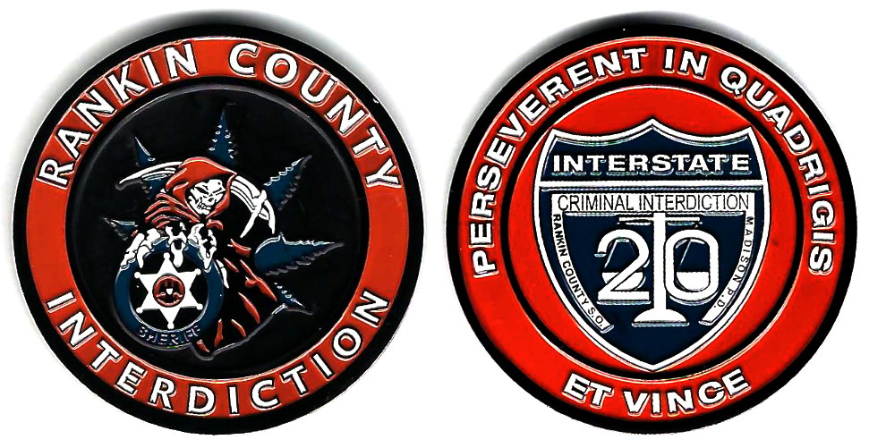 Round shaped coin, gunmetal black in color, 2 inches in diameter. Madison Wisconsin Police Department, Rankin County Sheriff's Office. Read More