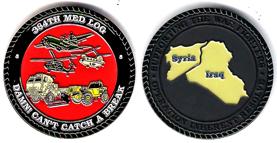 SIDE ONE: On a pewter background, the U.S. Army Transportation Corps insignia at the top, U.S. Army Ordnance insignia at lower left, and U.S. Army Quartermaster logo at lower right, all surrounded by a red border inscribed, "223th Transportation Comp... Read More