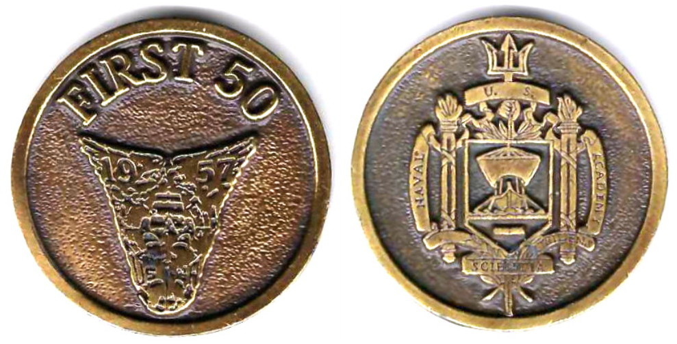SIDE 1: SIDE 2: The seal, or coat of arms, of the Naval Academy has for its crest a hand grasping a trident, below which is a shield bearing an ancient galley coming into action, bows on, and below that an open book, indicative of education, and... Read More